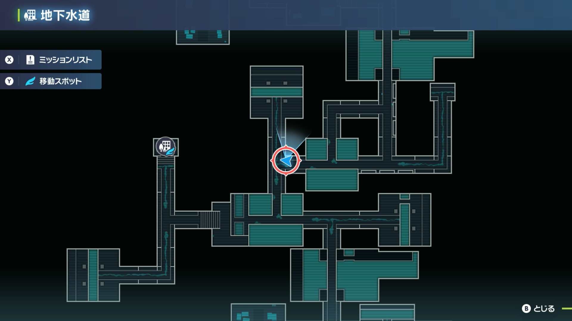 ヒトモシを読み込んだら、ファストトラベルで入口に戻りましょう。マップを開いてYボタンを押すと素早く入口にカーソルを合わせられます。