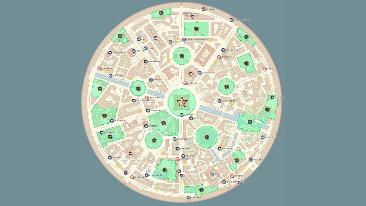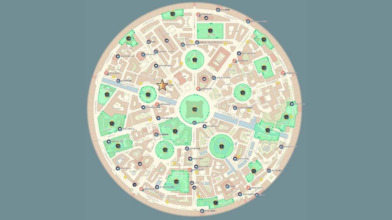 ヒトツキ色違いの厳選をするために、フラダリラボがあるフラダリカフェにファストトラベルで移動し、階段を降りてフラダリラボに入りましょう。
