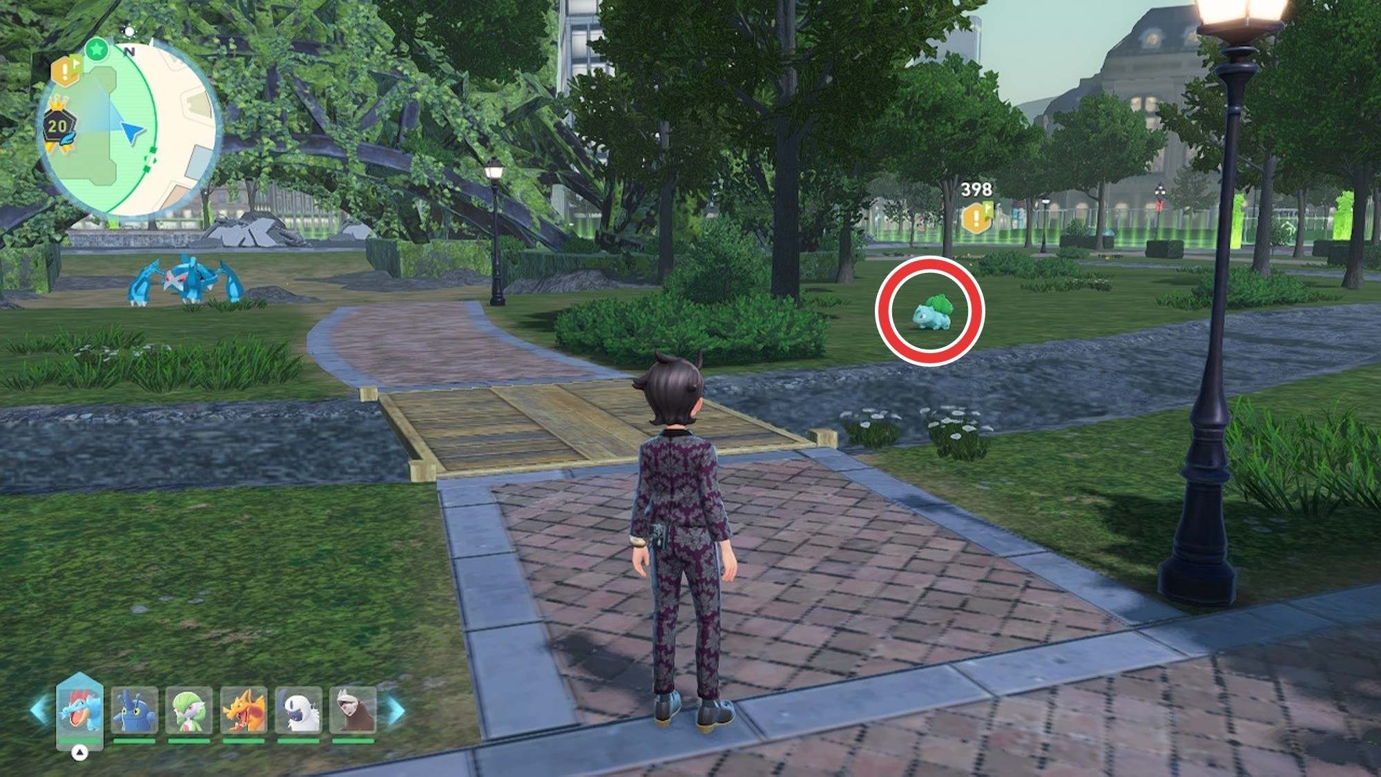 フシギダネは、ワイルドゾーン20の東側にいます。ワイルドゾーン20に入ってすぐのベンチから休憩を繰り返して、色違いの再抽選を行いましょう。