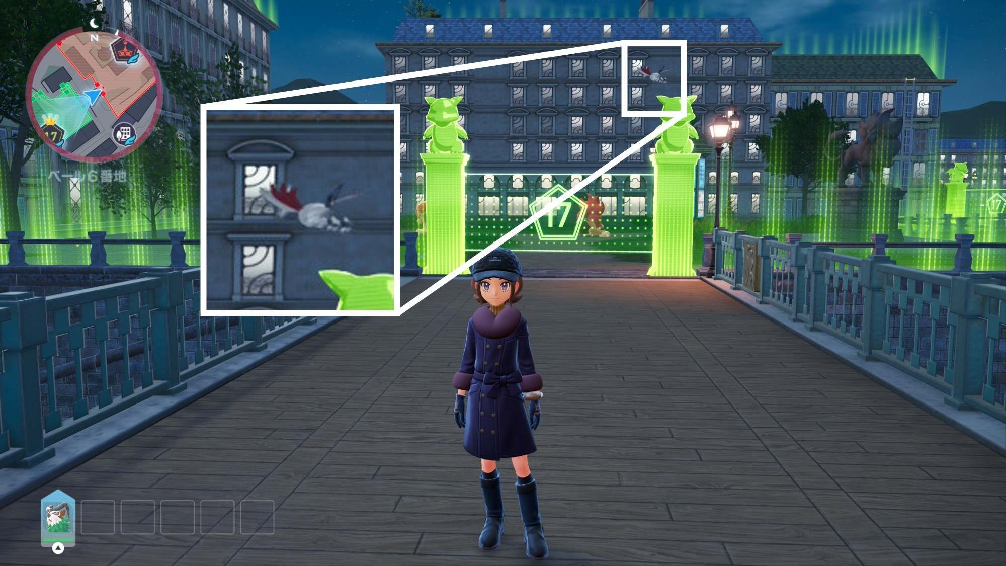 色違い厳選をしたいポケモンの場所に向かいましょう。野生のポケモンならどれでも厳選できますが、移動スポットの近くのポケモンや、建物の出入り口の近くのポケモンは素早く厳選できます。