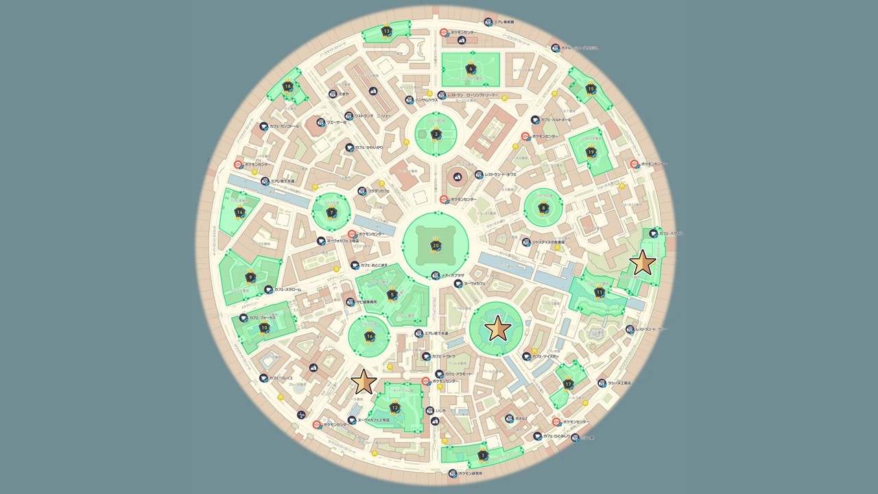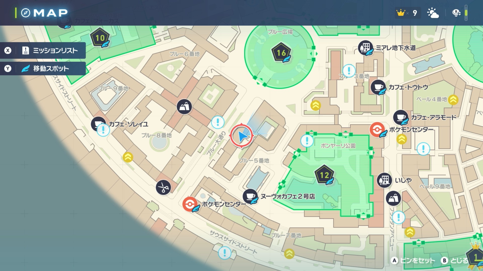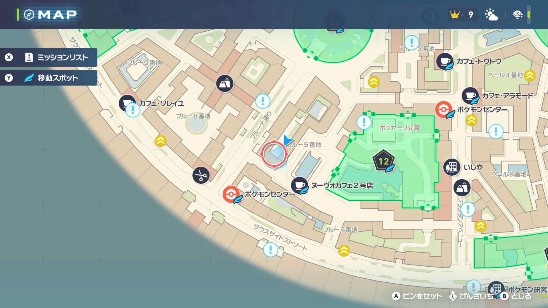 カメテテ色違いの厳選をするために、利用するベンチに近いヌーヴォカフェ2号店にファストトラベルで移動しましょう。