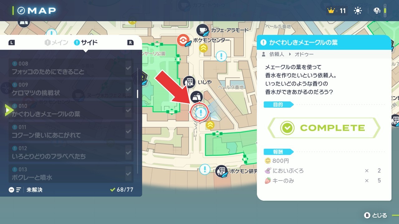 キーのみは、サイドミッションの報酬で入手できます。シュシュプからフレフワンの進化に必要なにおいぶくろも同時に入手可能です。