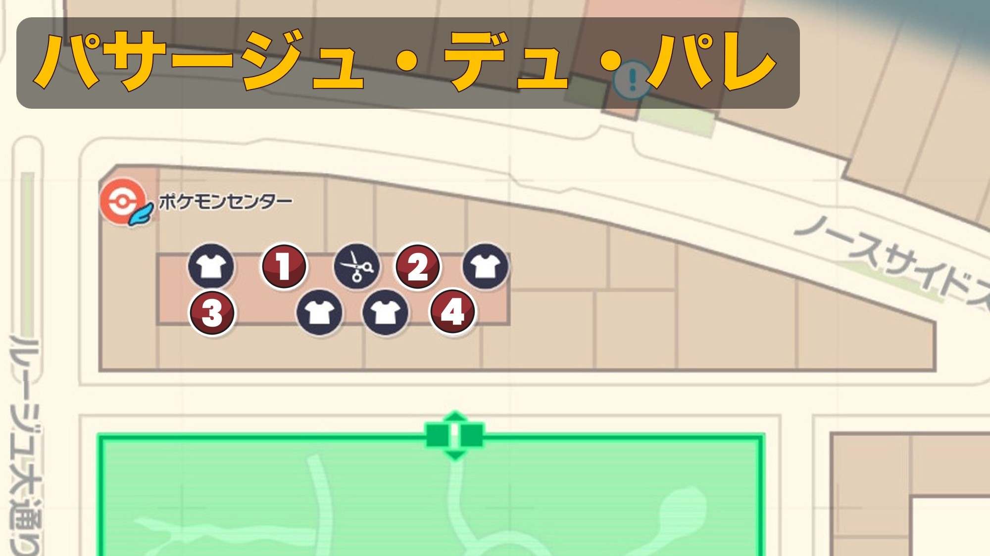 靴屋は、ミアレシティに合計21箇所あります。各マーケットに点在しており、それぞれで違う靴(フットウェア)が販売されています。