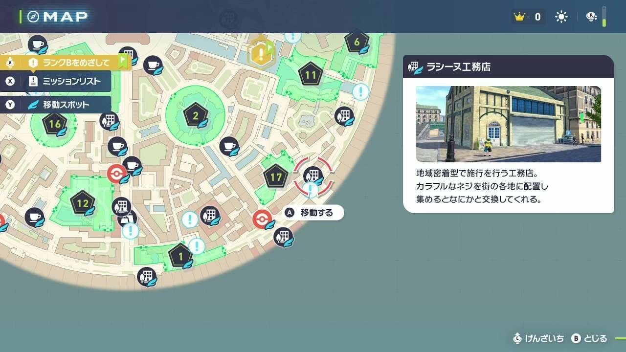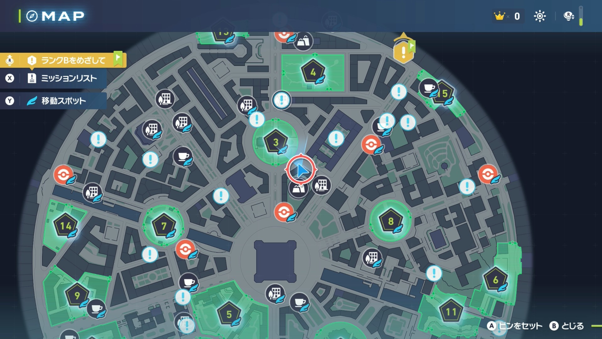 ▼バトルゾーン | 【進行度】序盤~終盤 ・ZAロワイヤルでトレーナーを倒す ・ベンチで時間を夜にして周回 |
