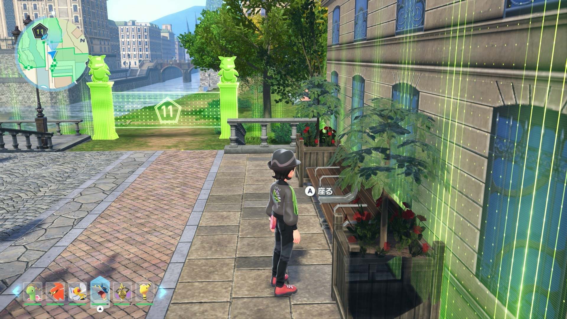 拡大するゾーン入口のベンチワイルドゾーン6に着いたら西に進み、ゾーン6と11の出入口にあるベンチで休憩を繰り返してロードを入れましょう。色違いポケモンは、ベンチ休憩などのロード時に低確率で出現します。