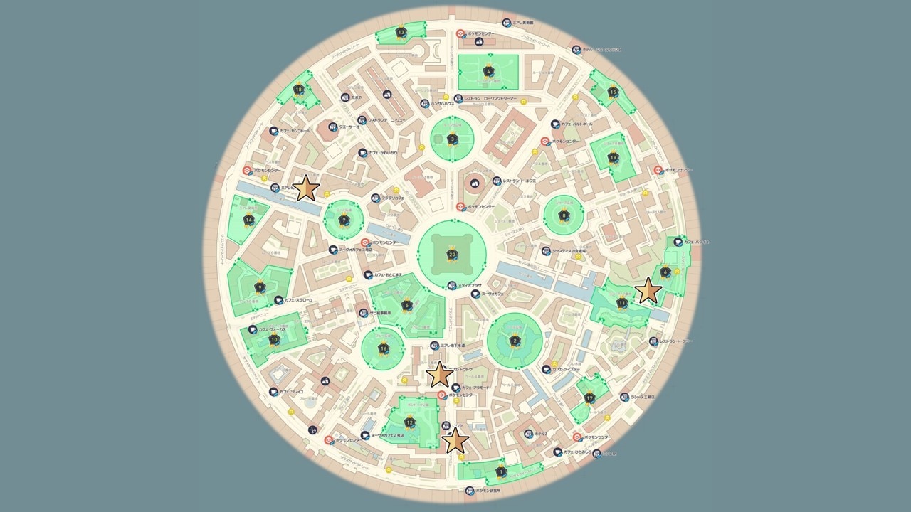ミミロルの出現場所マップです。ワイルドゾーン6のほか、ブルー3番地やローズ7番地、ベール9番地などの街中にも出現します。