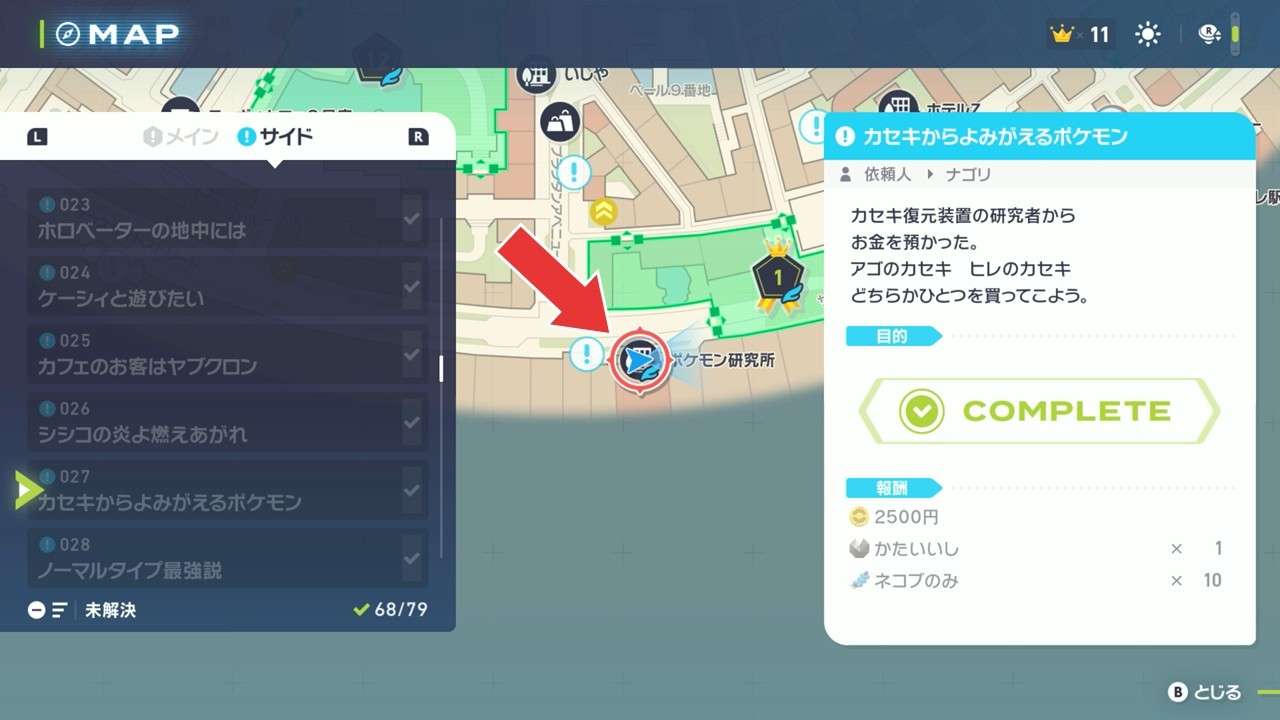 ネコブのみは、サイドミッションの報酬で入手できます。合計で25個のネコブのみを入手できるので、該当のサイドミッションをクリアしていない場合はおすすめの入手方法です。