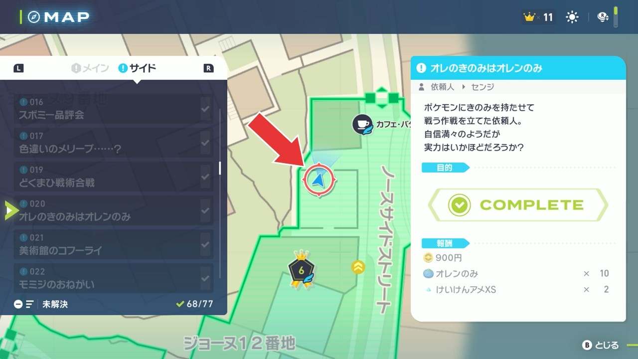サイドミッションでオレンのみを貰えるのは、クリア時の1度きりです。複数準備するなら、きのみショップで購入しましょう。