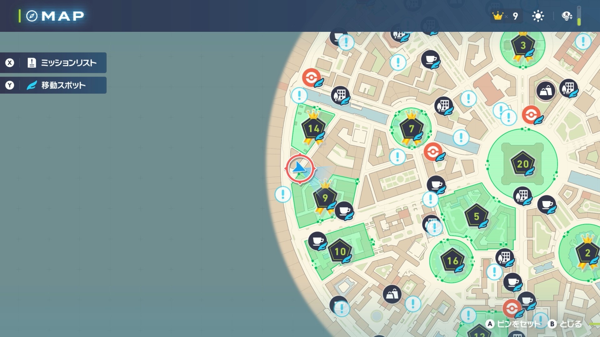 オヤブンライボルト色違いの厳選をするために、利用するワイルドゾーン9のベンチに近いワイルドゾーン14にファストトラベルで移動しましょう。
