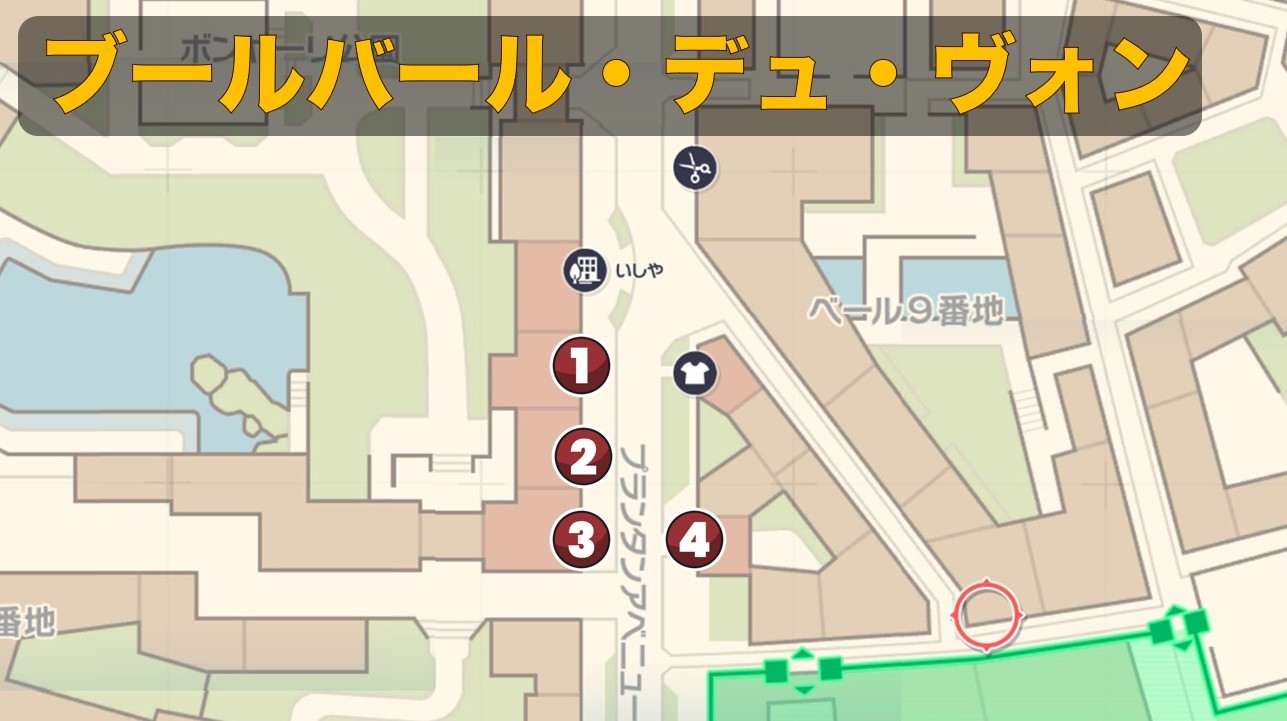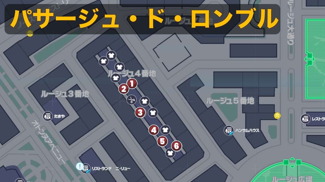 パンツ屋は、ミアレシティに合計24箇所あります。各マーケットに点在しており、それぞれで違うパンツ(ボトムス)が販売されています。