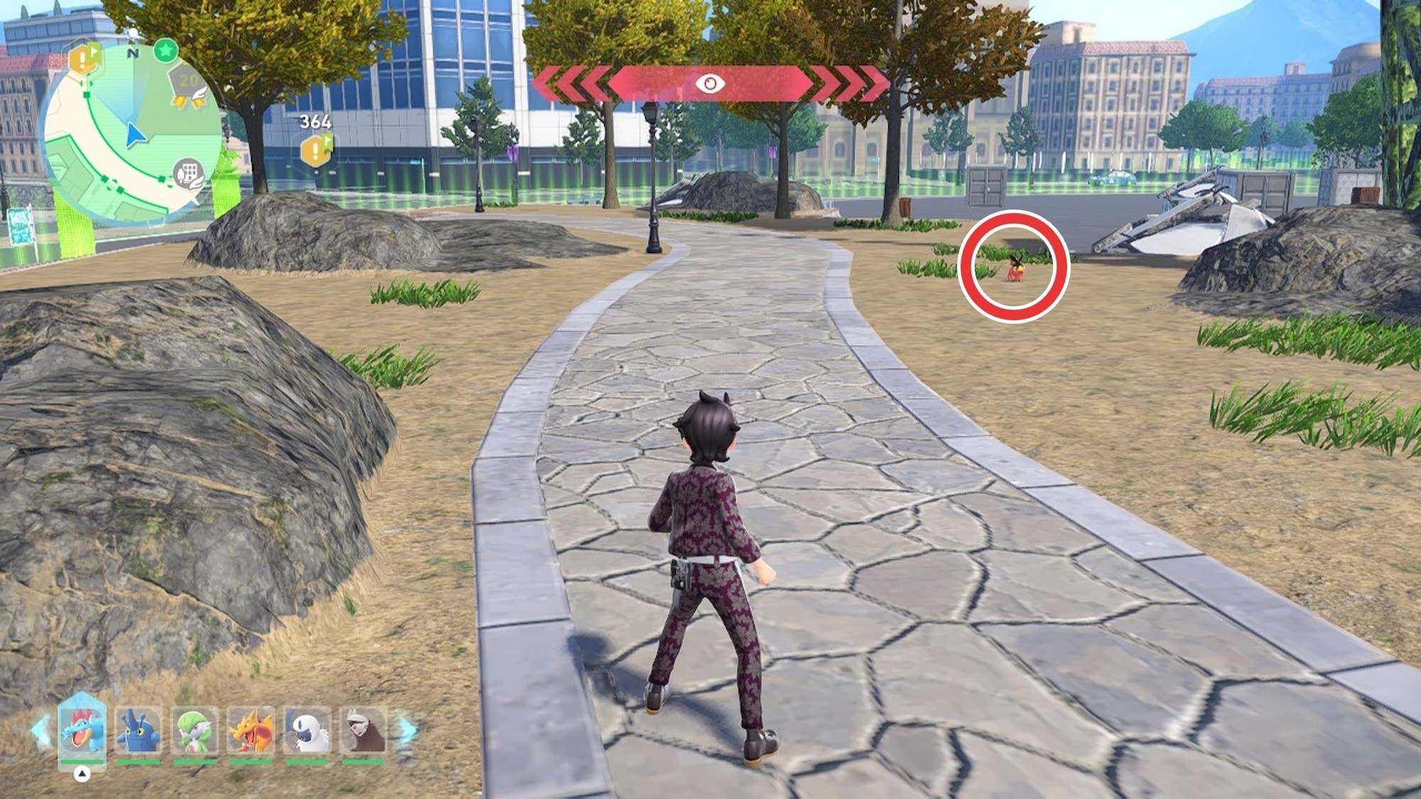 ワイルドゾーン20の南から中に入ったら、石畳に沿って進んで西のゲートから出ます。