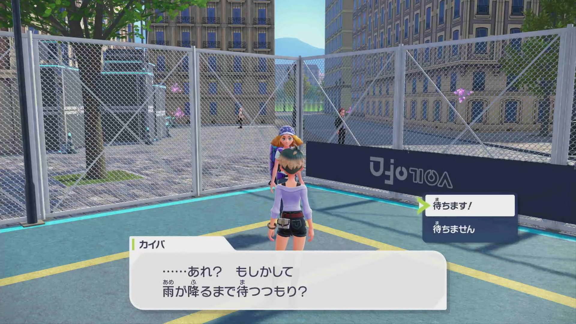 ポケモンZAの雨天決行は、晴れの日でも進行できます。「雨が降ったら勝負」と言われますが、再度話かけて選択肢上の「待ちます!」を選ぶと雨が降ってきて対戦に移るため、天候に影響されません。