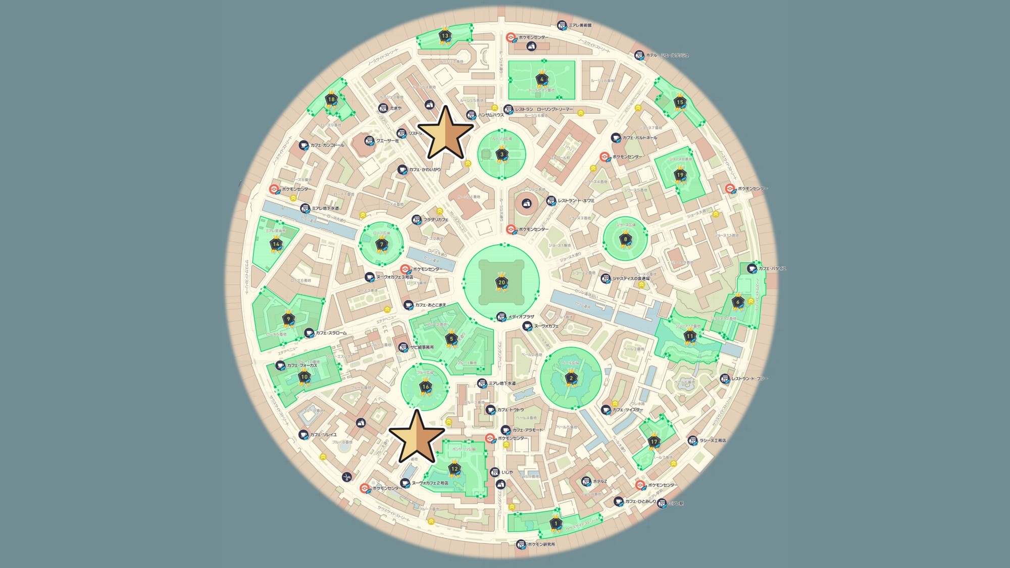 リオルの出現場所マップです。星マークが出現場所を表しています。