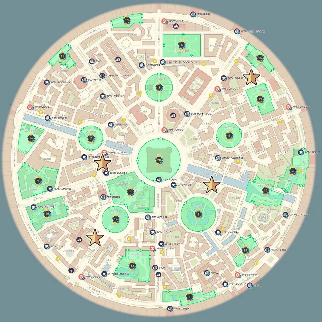 ルチャブルの出現場所マップです。星マークが出現場所を表しています。