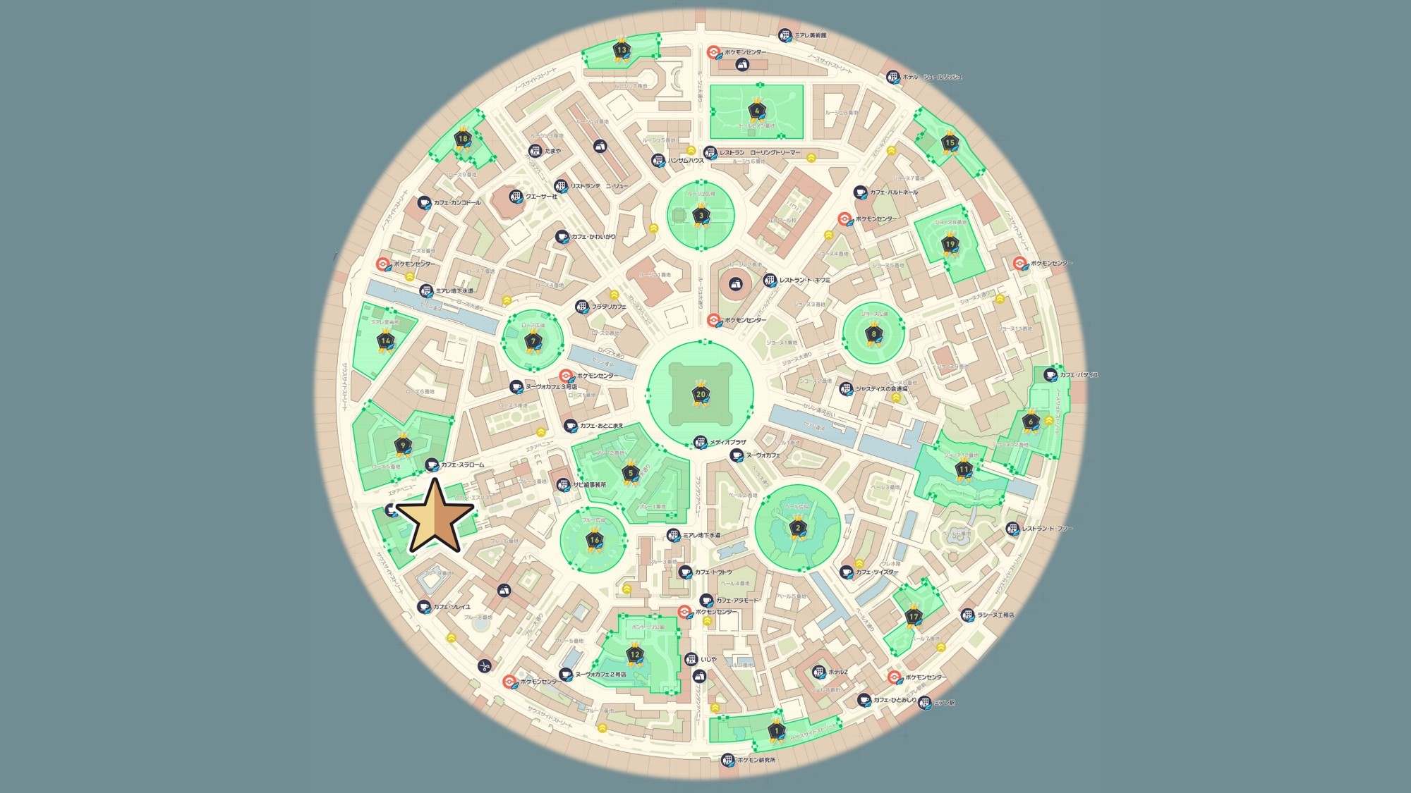 シビシラスの出現場所マップです。星マークが出現場所を表しています。