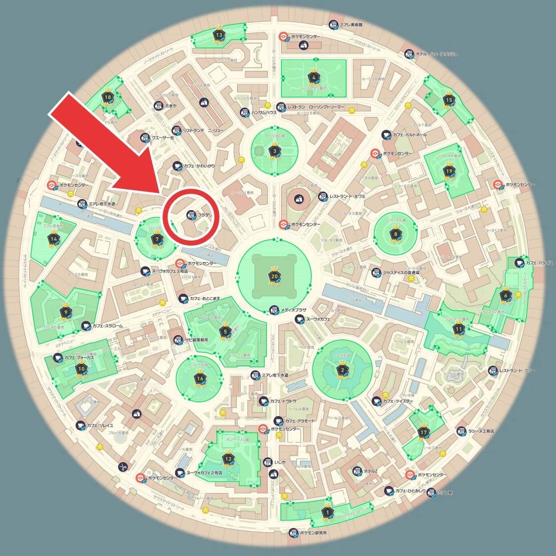 メガストーンを受け取ったらフラダリカフェに向かいます。到着したら、奥にあるフラダリラボのエレベーターまで進みましょう。