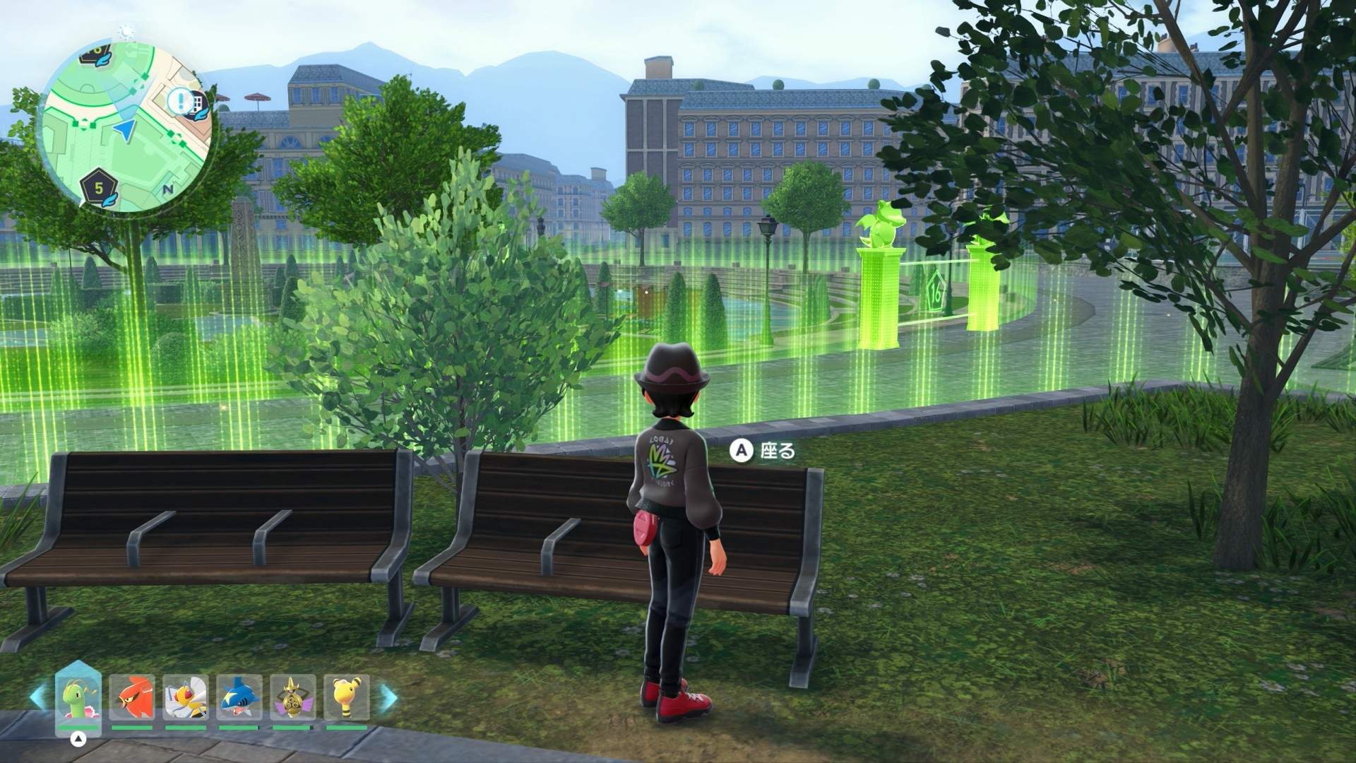 拡大する南のベンチワイルドゾーン5に入り、南のベンチで休憩を繰り返してロードを入れましょう。色違いポケモンは、ベンチ休憩などのロード時に低確率で出現します。