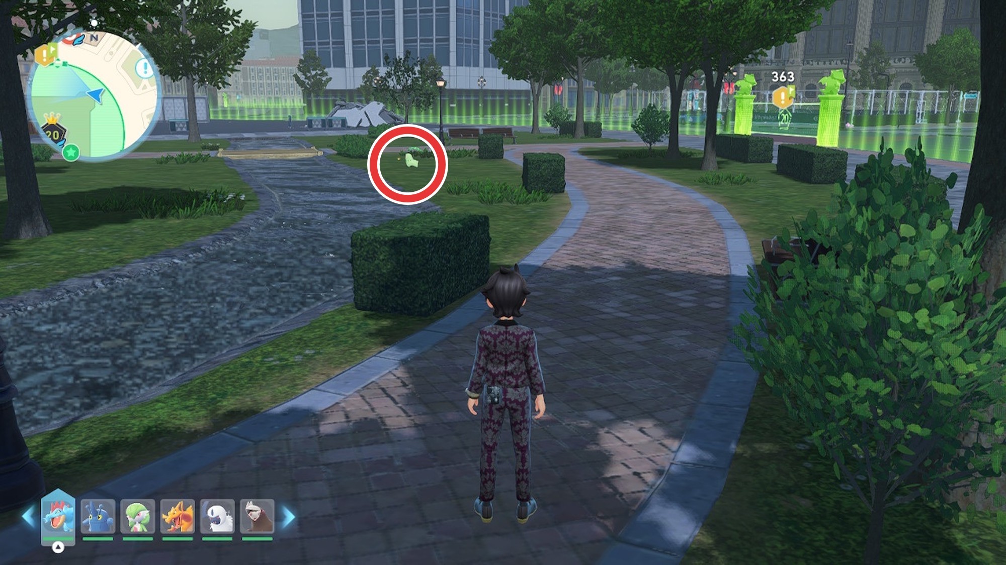 チコリータは、ワイルドゾーン20の東側にいます。ワイルドゾーン20に入ってすぐのベンチから休憩を繰り返して、色違いの再抽選を行いましょう。