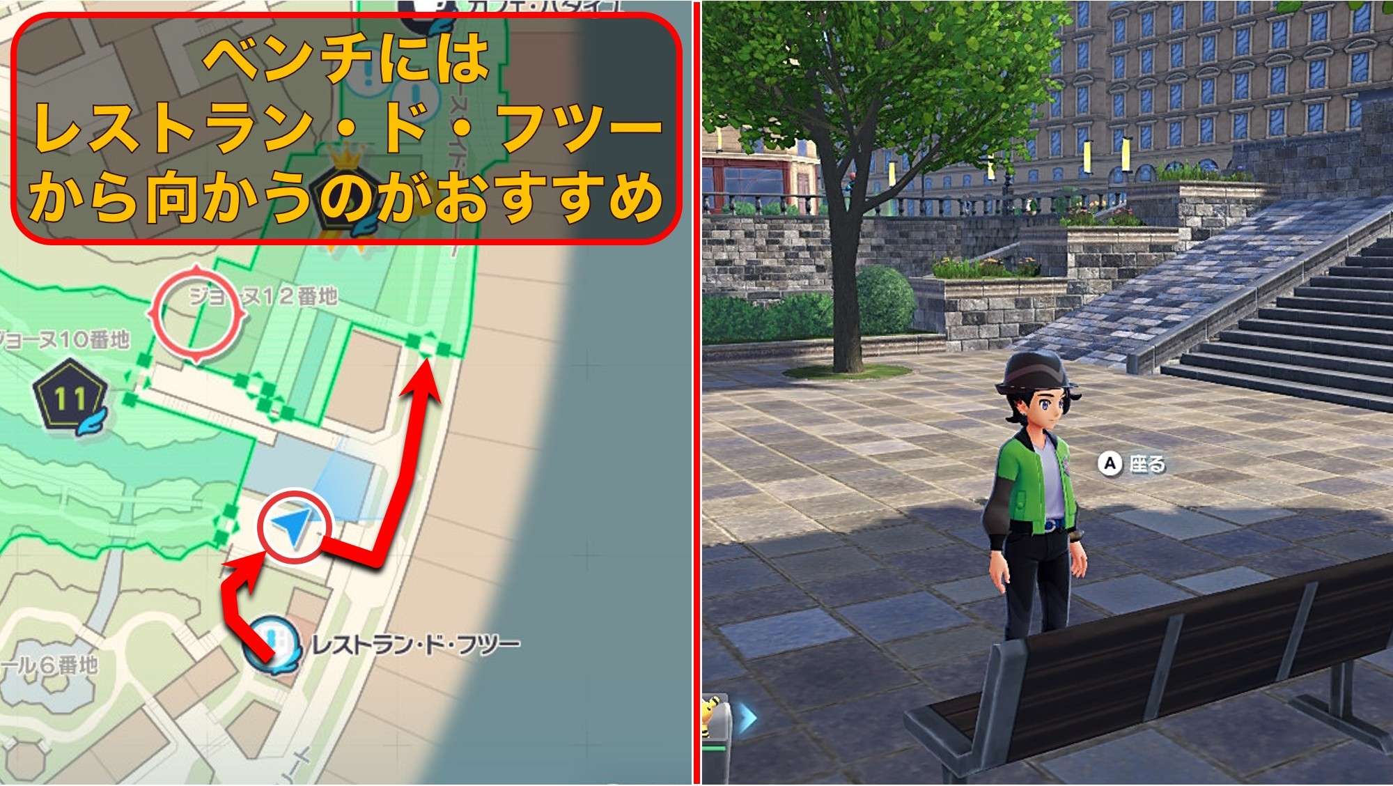 - 色違い厳選場所のベンチに向かう