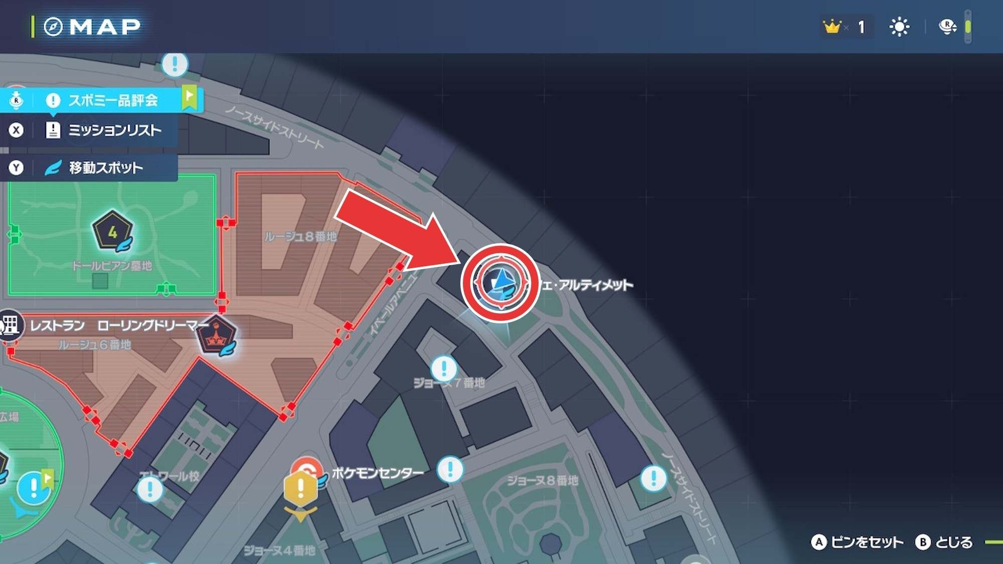 アルティメットコーヒーは、マップ北東のポケモンセンター:イベールからさらに北東に進むと到着するカフェ・アルティメットで飲めます。ワイルドゾーン15が解放されている場合は直接向かうのが最速です。