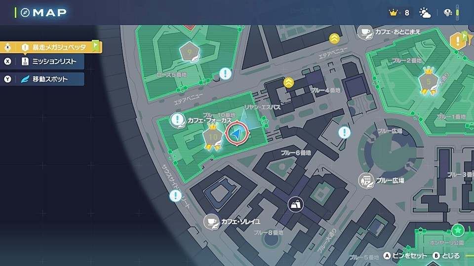 ヤドン色違いの厳選をするために、ワイルドゾーン10へ向かいます。直接ファストトラベルできない場合は、付近のカフェやポケモンセンターなどを活用してファストトラベルを解放しましょう。