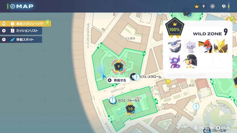 ヤミラミ色違いの厳選をするために、ワイルドゾーン9へ向かいましょう。ヤミラミは、ゾーン9にある足場の下に出現します。