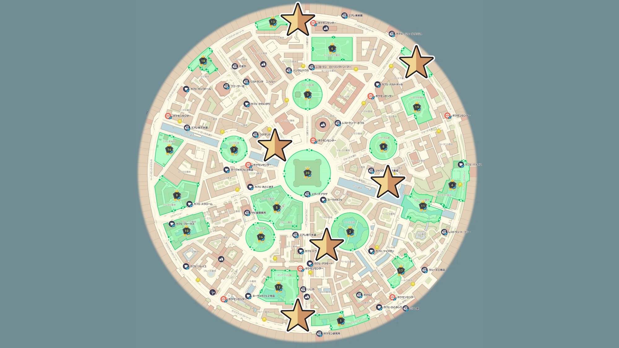 ヨーギラスの出現場所マップです。星マークが出現場所を表しています。
