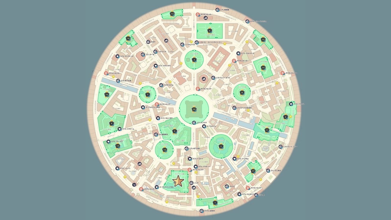 拡大するゾーンの中央ワイルドゾーン12に入り、中央のベンチで休憩を繰り返してロードを入れましょう。色違いポケモンは、ベンチ休憩などのロード時に低確率で出現します。