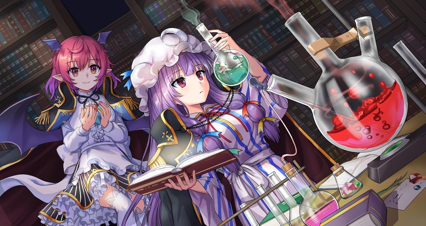 | 【解説4】 小悪魔はパチュリーに示された文章を読むと顔をあげた。「これは……出来上がるのに百年かかる、ということですか?」「御明察よ。私も貴方も人間ではないから百年待つことは不可能ではないけれど……もっと早くできた方がいいわよね」寿命が長いからといって、全員がものすごく辛抱強いというわけではない。小悪魔は少し考えた後、ぱっと手を挙げた。「私、もっと短く作る方法がないか、他の本からも探してみます!」「ほんとう? 助かるわ……」そう言われるや否や、小悪魔は自らの能力を使ってあっという間に本を見つけ出す。そこに書かれた内容を見て、パチュリーはまた悩ましい声をあげた。「パチュリー様、どうされました?」「ショートカットは可能よ。ただし……未完成の賢者の石が必要なの」 |