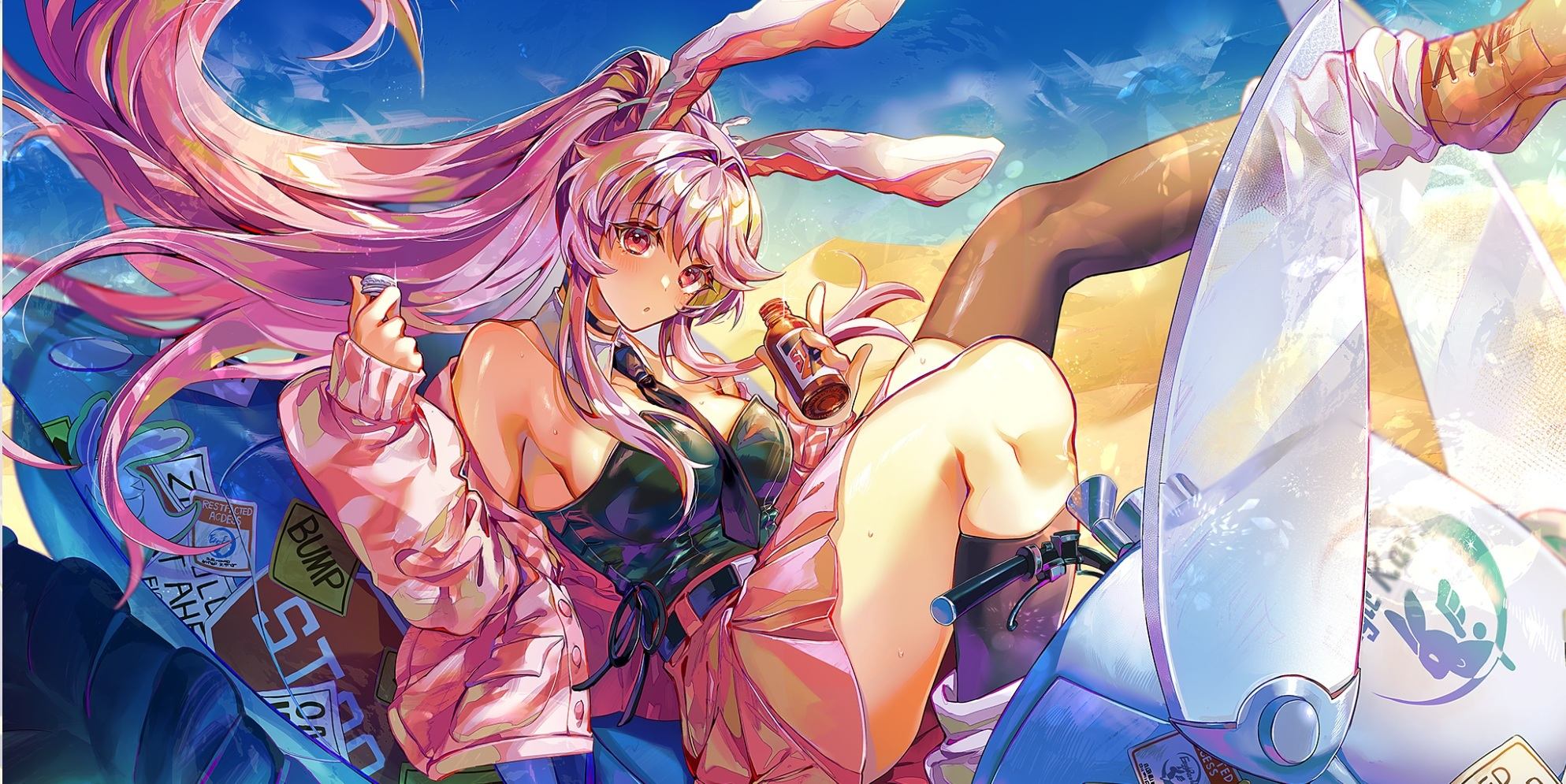 | 【解説1】 【鈴仙・優曇華院・イナバ】レースが開催されている世界の鈴仙。この世界の彼女は、自身もバギー型の車を持ち、それを颯爽と走らせている。そして、今日も── |