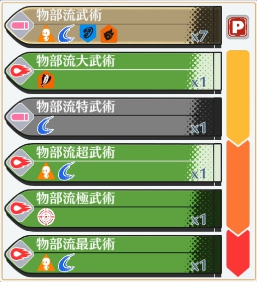 [攻撃]木属性相手単体陰防低下斬裂各種特攻光弾 [弾幕構成]陰気より [ブースト追加]火属性精密光弾/土属性自身回避上昇斬裂各種特攻光弾/金属性光弾/水属性自身陰攻上昇各種特攻光弾/木属性斬裂光弾 |