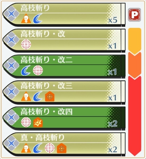 [攻撃]日属性斬撃弾 [弾幕構成]陽気より [ブースト追加]日属性精密斬撃弾/木属性精密斬裂斬撃弾/日属性自身命中上昇斬裂各種特攻斬撃弾/木属性自身CRI攻撃上昇精密斬撃弾/日属性自身命中上昇精密斬裂各種特攻斬撃弾 |