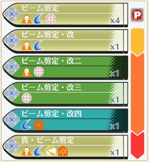 [攻撃]日属性精密斬裂各種特攻斬撃弾 [弾幕構成]陽気より [ブースト追加]日属性斬裂各種特攻斬撃弾/木属性精密各種特攻斬撃弾/木属性精密斬撃弾/水属性自身命中上昇斬裂斬撃弾/日属性自身CRI命中上昇弾性斬裂各種特攻斬撃弾 |
