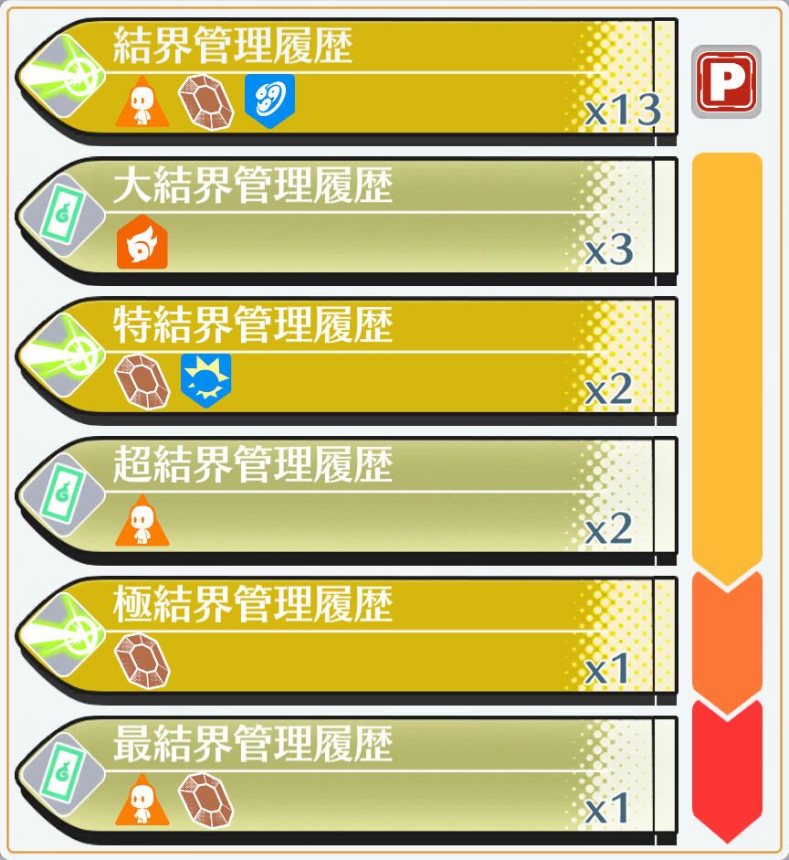 | 能力 | 有利属性に与えるダメージを40%アップ 結界異常「凍結」「帯電」「毒霧」にかからずに霊力を0.20上昇 ブースト使用時、味方全体の陽防を1段階アップ(1T) |