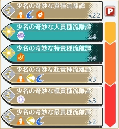 【キャラ】少名針妙丸 [攻撃前]相手全体に結界異常「暗闇」を1枚(3枚)付与(3T),味方全体の陽攻を1段階(3段階)アップ(3T),味方全体のCRI攻撃を1段階(3段階)アップ(3T),自身の速力を1段階(3段階)アップ(3T) [攻撃]星属性相手全体陽防低下斬裂各種特攻質量弾 [攻撃後]- [弾幕構成]陽気のみ [ブースト追加]金属性相手全体煙幕通常弾/星属性斬裂各種特攻質量弾/金属性閃光必中通常弾/星属性斬裂弾性各種特攻質量弾/星属性斬裂弾性各種特攻質量弾 |