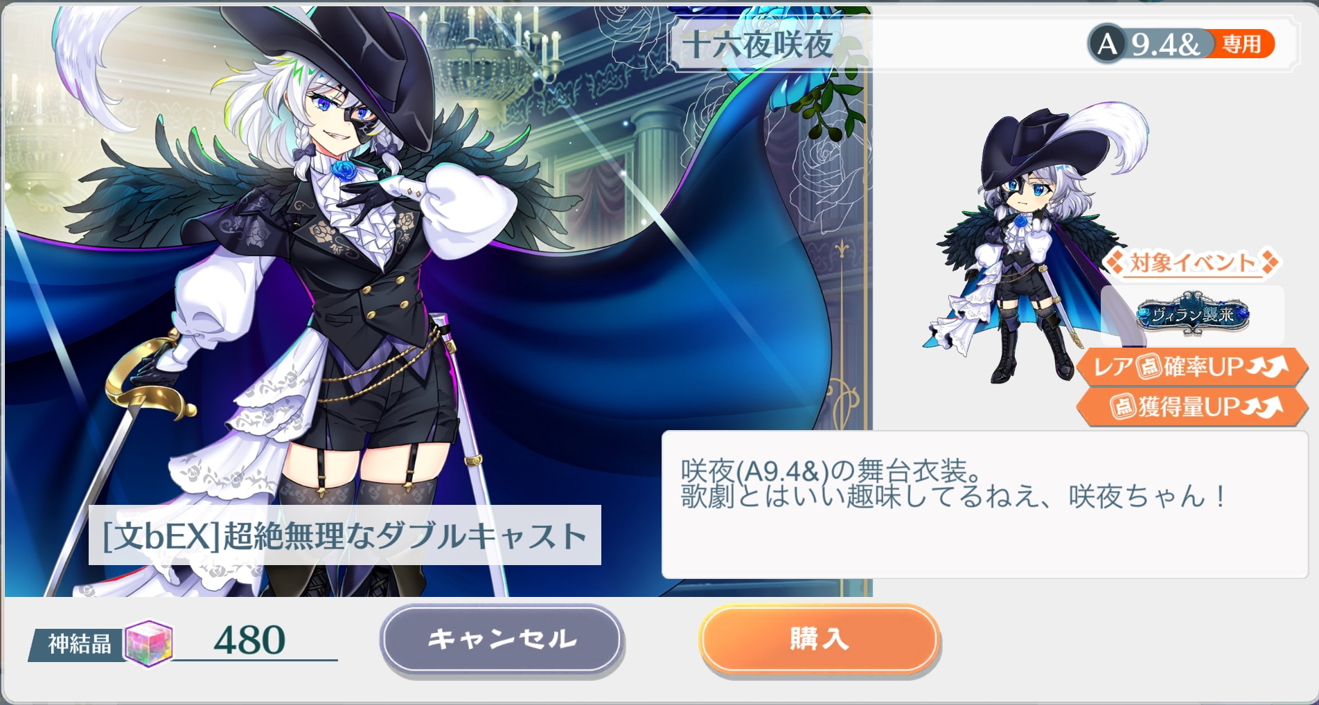 衣装はイベントやショップ購入で入手できます。衣装の購入には、衣装1つにつき神結晶が320から480個必要です。