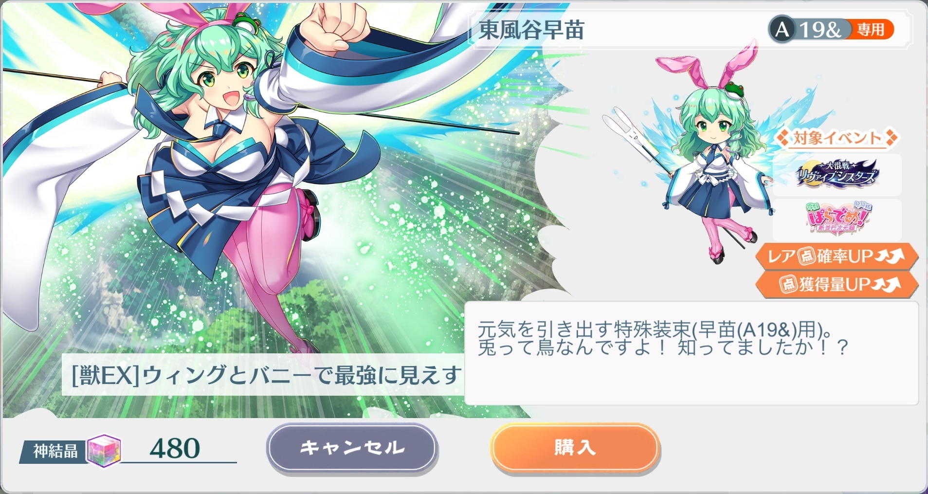 拡大する東風谷早苗(A19&)(「[獣EX]ウィングとバニーで最強に見えすぎる」) |