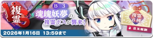 VS複霊の攻略│魂魄妖夢(B3)の複霊ボスが登場しました。VS複霊は、登場する相手が強い「高難易度のコンテンツ」です。ゲームの参加方法は探索の「イベント」タブから挑戦できます。