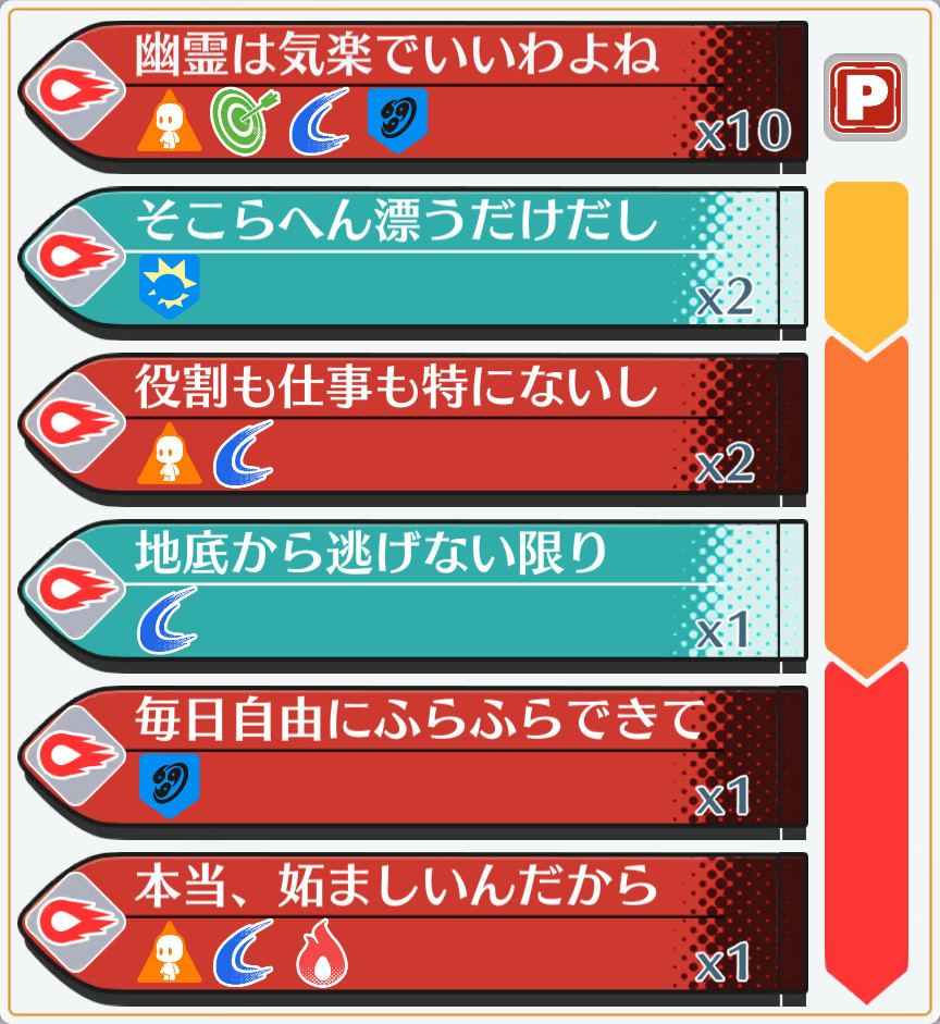 東方ロストワード(東ロワ/ロスワ)の火属性キャラ一覧です。火属性を含むショット/スペルカード/ラストワードを持つキャラを掲載しています。各攻撃の詳細も確認できるため、相手の弱点属性に合わせたキャラを探す際にご活用下さい。