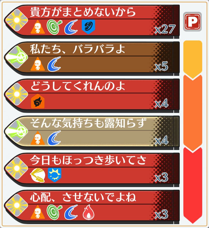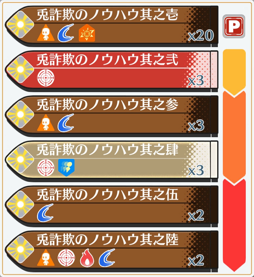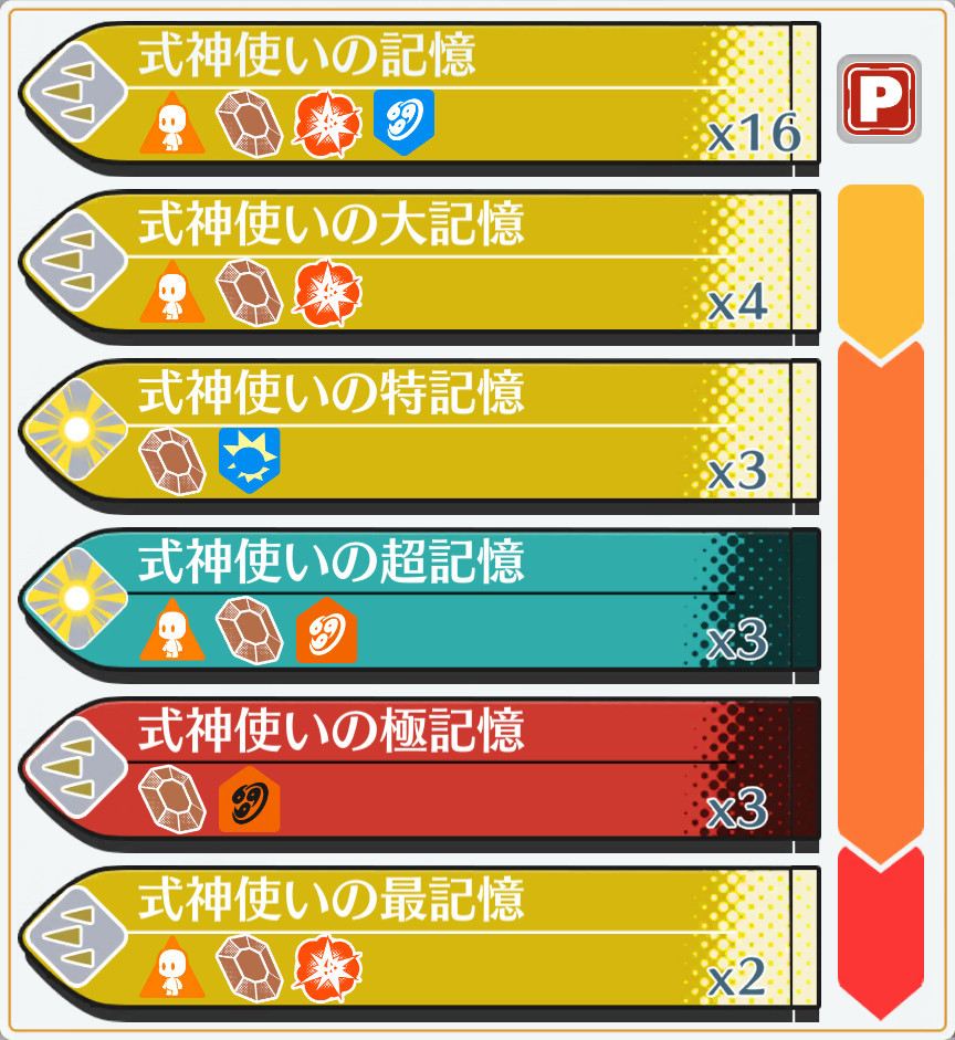 | 日属性 | 月属性 | 火属性 | 水属性 |
