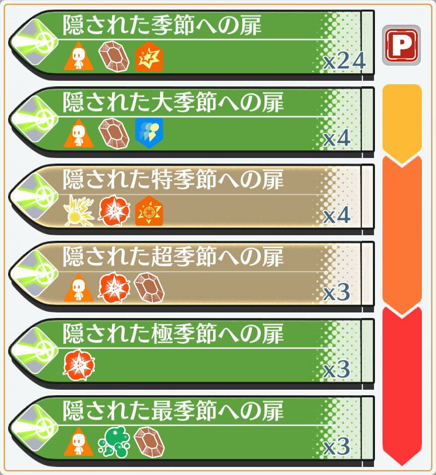 | 木属性 | 金属性 | 土属性 | 星属性 |