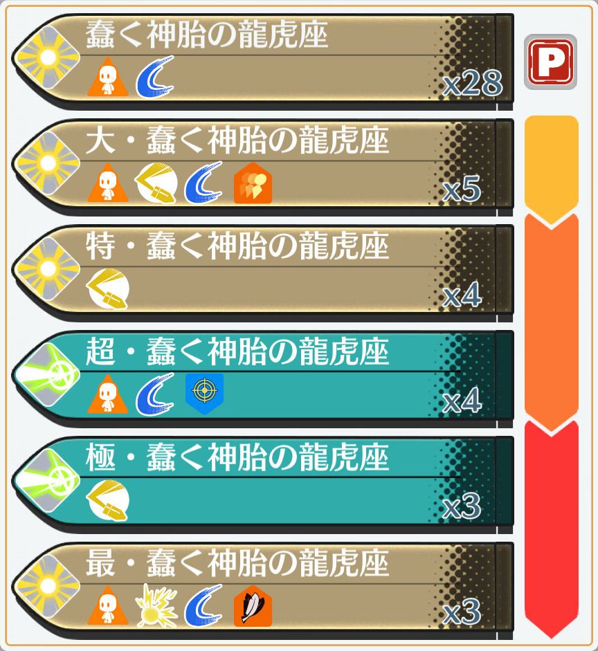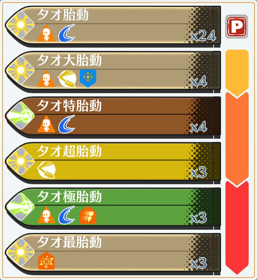 | 日属性 | 月属性 | 火属性 | 水属性 |