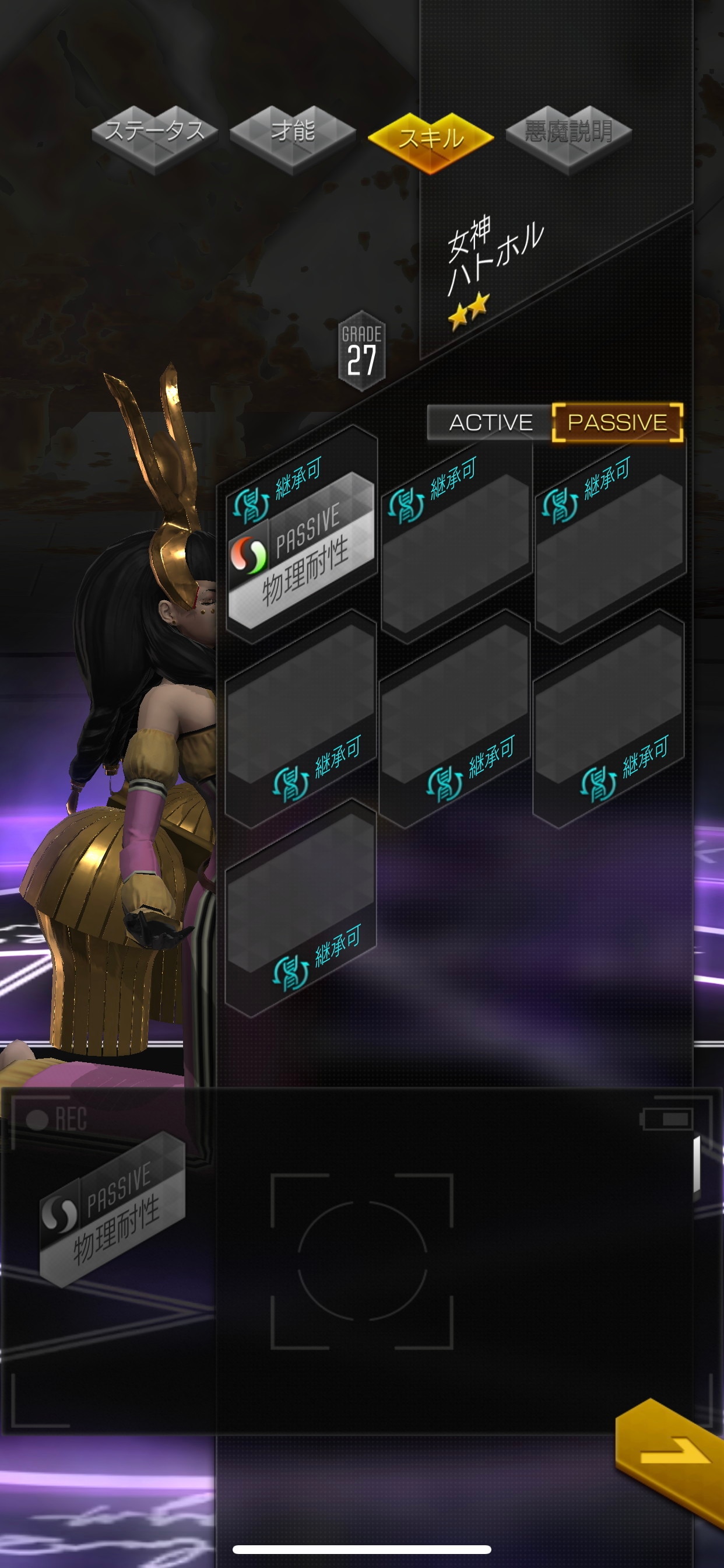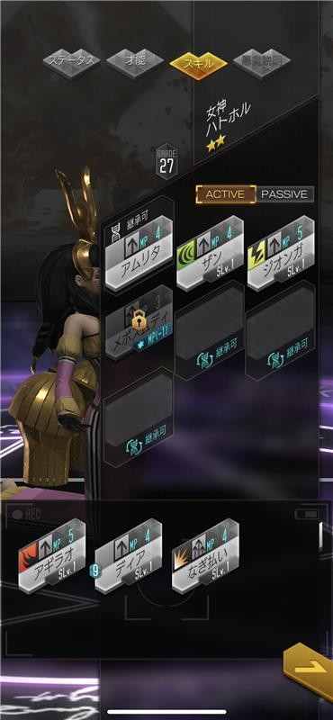 スキル画面がアクティブとパッシブの2個に増え、スキルの編成の幅が広がるようです。現在開発中であるため、インターフェースなどの変更が入る可能性があります。