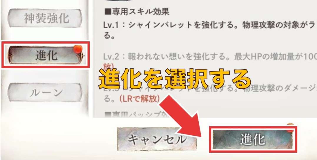 | 1 | 拡大する進化させたい武器を選ぶ |