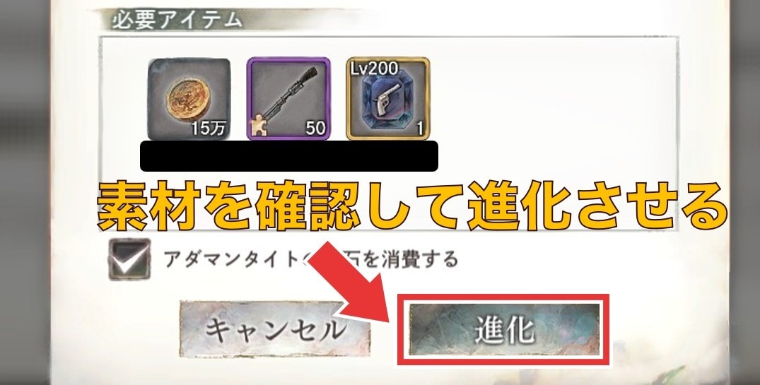 アダマンタイトはキャラの装備項目にある進化から行えます。
