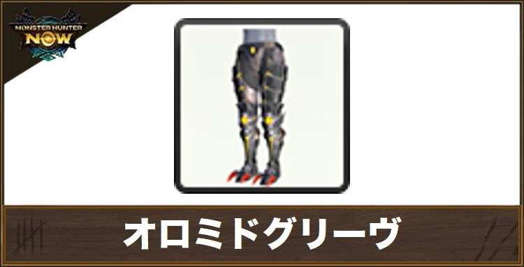 モンハンNow(モンハンナウ)のオロミドグリーヴの性能と強化素材を紹介。グレード別の防御力はもちろん、装備スキルも記載しています。生産素材とグレード別の強化素材もまとめているので、オロミドグリーヴを装備する際の参考にしてください。