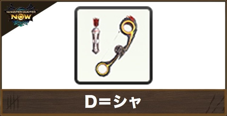 モンハンNow(モンハンナウ)のD=シャ1の性能と強化素材を紹介。グレード別の攻撃力はもちろん、装備スキルも記載しています。生産素材とグレード別の強化素材もまとめているので、D=シャ1を装備する際の参考にしてください。