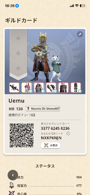 HR328です。毎日ログインしていてアクティブな方です。ランス、双剣、ヘビィ使ってます。