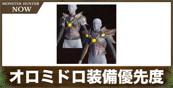 モンハンNow(モンハンナウ)のオロミドロ装備の作成優先度を記載しています。オロミドロ装備の作成おすすめ装備、武器一覧、防具一覧、生産素材の入手方法を確認できるので、オロミド装備を作成する際の参考にしてください。