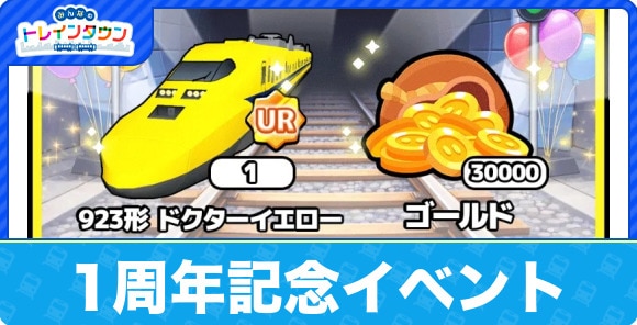1周年を記念して、923型ドクターイエローが入手できるパックが発売中です。ゴールド30,000も入手できるため、ガチャアップグレードや建設も効率よく進められます。